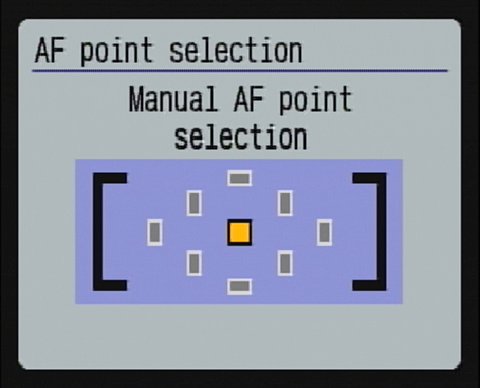 Wie bei den meisten EOS-Kameras kann man die Wahl des AF-Betriebsmodus (One-Shot bzw. Einzelbildfokussierung und AI-Servo bzw. vorausrechnende Schärfenachführung) im AI-Focus-Modus der Kameraautomatik überlassen. In der Vollautomatik und in den Motivprogrammen braucht man sich eh nicht um die Wahl des AF-Betriebsmodus zu kümmern. Ähnlich verhält es sich mit der Messfeldwahl, die je nach Einstellung automatisch oder manuell (nach Drücken der Messfeldwahl-Taste wahlweise mit dem Einstellrad direkt hinterm Auslöser oder mit den Pfeiltasten des Steuerfeldes) erfolgt. Das ausgewählte bzw. aktivierte AF-Feld wird dann sowohl im Sucher (über eine rote Leuchtmarkierung) als neuerdings auch auf dem LC-Bildschirm angezeigt. Leider wird bei der EOS 400D immer noch der eingebaute Miniaturblitz als AF-Hilfslicht missbraucht. Zwar kann die nur 250 Millisekunden andauernde Blitzsalve (mit einer Reichweite von 3,5 bis 4 Metern je nach AF-Messfeld) über eine Individualfunktion (C.Fn-5) ausgeschaltet werden bzw. bleibt in manchen Motivprogrammen sowieso inaktiv, aber es wäre wünschenswert, wenn das gute alte "Rotlicht" früherer EOS-Kameras auch bei den digitalen Kameras der EOS-Serie wieder Einzug fände. Das diskrete rote AF-Hilfslicht kann man sich aber weiterhin über die Anschaffung eines externen Systemblitzgerätes der Speedlite-Serie erkaufen; das vom Rotlicht-Strahler des Blitzgerätes ausgesandte Messmuster deckt nur bei den Blitzmodellen 580EX, 430EX und 420EX alle 9 AF-Messfelder der Kamera ab.